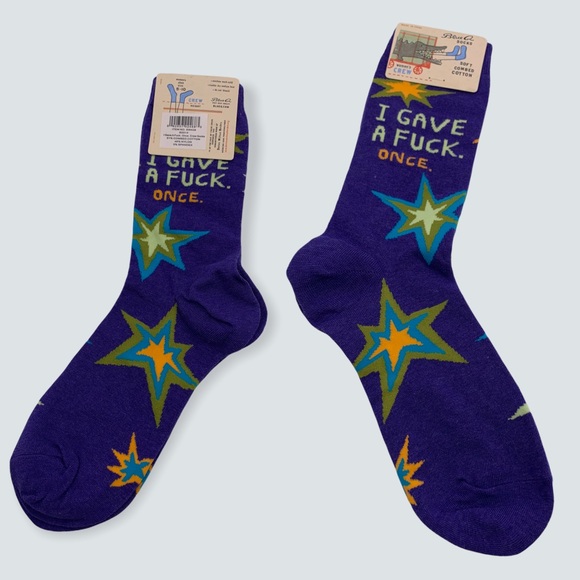 Omg I love these socks! I adore Blue Q stuff and their awesome irreverent product line. We need a good giggle these days! I never saw this particular, um, sentiment on their socks before, and I had to get them! Thx for putting them up for sale. You made my day! It was worth the wait. Stay well…