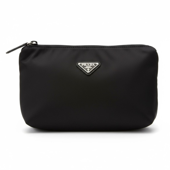 The pouch was sent quickly. It is in great condition. I held it up to my other Prada black nylon bags and it is not black as stated it is more of a green shade. It appears to be authentic, although the number tag inside does not look quite right, the way the seam goes thru it. I decided to keep it and will get a lot of use out of it.
