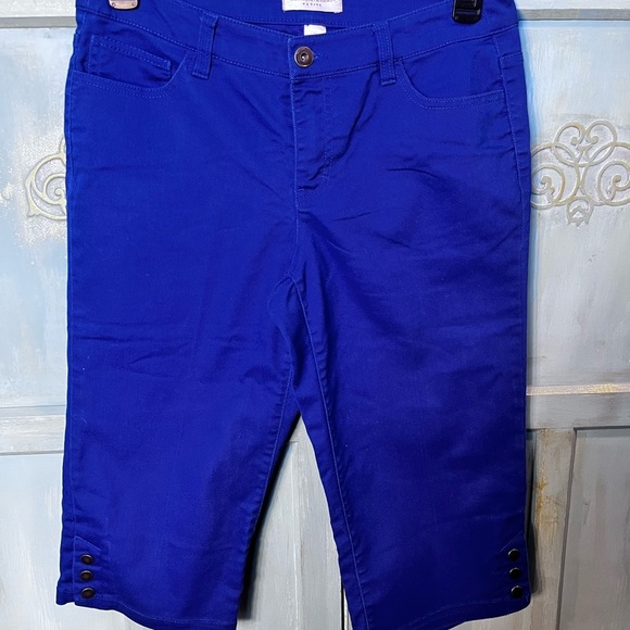 Hi. Thanks for these bright blue pants. I was trying to match them up with my bright blue & white gingham shirt, & found several other tops that were just hanging around in my closet looking for a match. Oh, my! What shall I pair them with… yep! The bright blue & white gingham shirt. Thank you