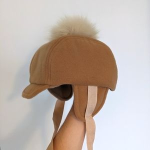 Handmade Cashmere Winter Hat Cap, with Fox Fur Pompom and Lined with Mink Fur