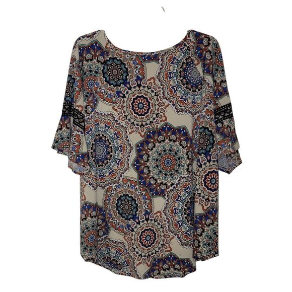 Very pretty top! In the pictures it looked very muted, but it is much more colorful in person. Thank you!