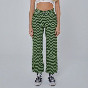 NWT Ragged Jeans Wave print lime Green dad Denim Jeans