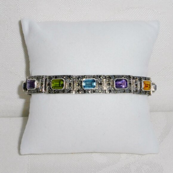 Gorgeous vintage sterling bracelet with marcasite amethyst, topaz, citrine, and Peridot gemstones. Love it!