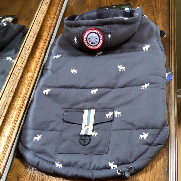 Dog jacket, gray with little white moose, arrived well-packed and in a timely fashion. Happy with my purchase!