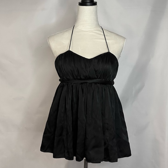 Alice + Olivia Tops - Alice + Olivia Black Silk Babydoll Spaghetti String Halter Top Sz S