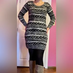 Cozy red turtle neck stripe pattern sweater dress. Brand: Venus.