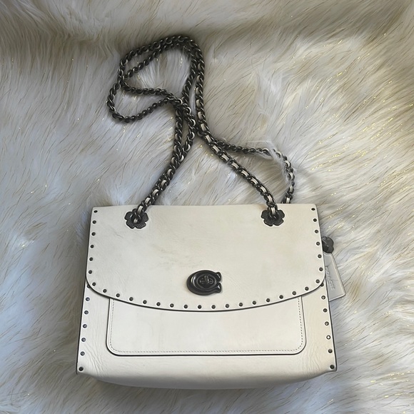 Came quickly, bag in mostly great condition! The marks came off easily with leather cleaner, and it looks good as new. There was some slight damage on the hardware that isn't visible in the pictures - I suspect it was inflicted during shipping. Thank you!
