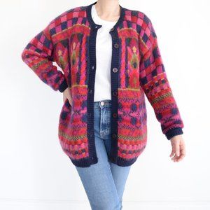 Vintage Susan Bristol Pink & Navy Chunky Knit Cardigan Shacket Med