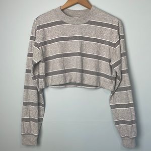 TNA Ryder Crop Striped Grey Long Sleeve Size Medium