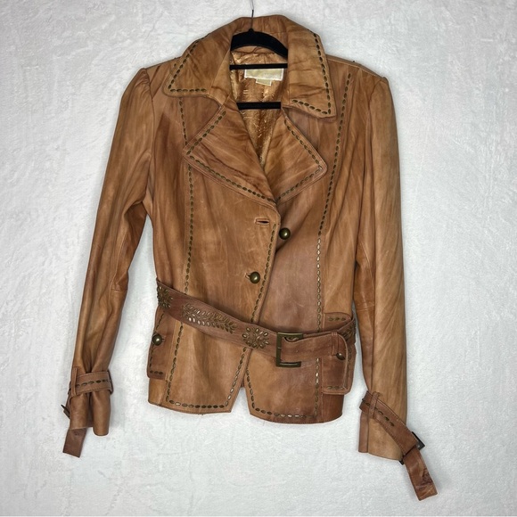 Stunning supple leather with leaf shaped stud details.Seller price made Michael Kors affordable for purchase.Fast shipping and packaged with a gift scarf that matched the gorgeous camel tan leather. Thank you