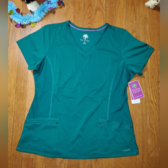 Package arrive quickly, in perfect new condition, with cute and thoughtful packaging and a thank you card!! Very happy with the scrub top!