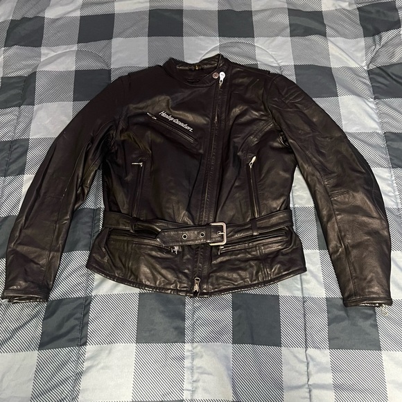 As described . Beautiful like new women’s Harley Davidson Jacket with zip out shell. Love this on me . Perfect fit ( always go up a size !) hardware is solid , very stylish , can’t wait to get behind my man on his bike 🏍️ wearing a similar men’s Harley Davidson jacket on the road in Manitoba this year. Great Seller . Packaged well . Got here in good time. Very satisfied with this transaction.
