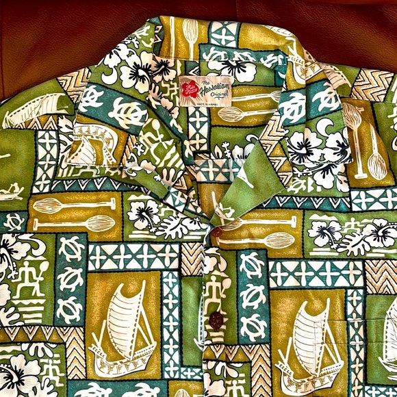 Great shirt in like-new condition. Perfect for what it is. Wish Hilo Hattie would do this pattern in Rayon.
