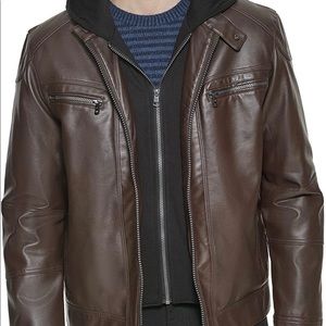 Calvin Klein Men's Faux-Leather Moto Jacket with Hoodie