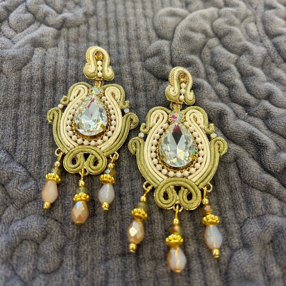 Beautiful earrings. Items were as described. Packaged with great care and the presentation was beautifully boxed and wrapped. Just delivered in a timely fashion. Earrings are just a bit too heavy for me to wear. Probably return them and get something else from the cellar.