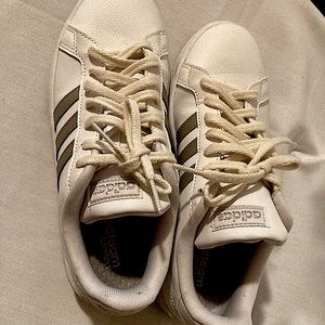 Adidas 7.5 US white with silver 3 stripes