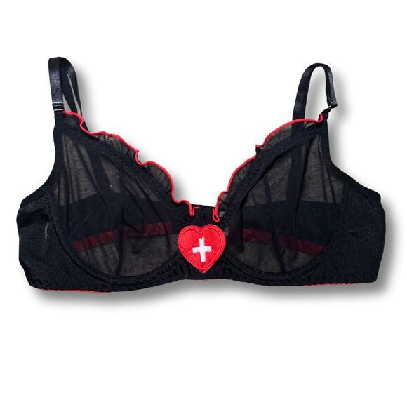 Other Other - Black & Red Sexy Emo Alternative Punk Gothic Nurse Costume Lingerie Bra Top XL