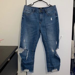 Ripped straight leg cropped jeans