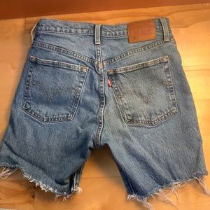 Levis 501 small shorts. Raw hem, button closure.