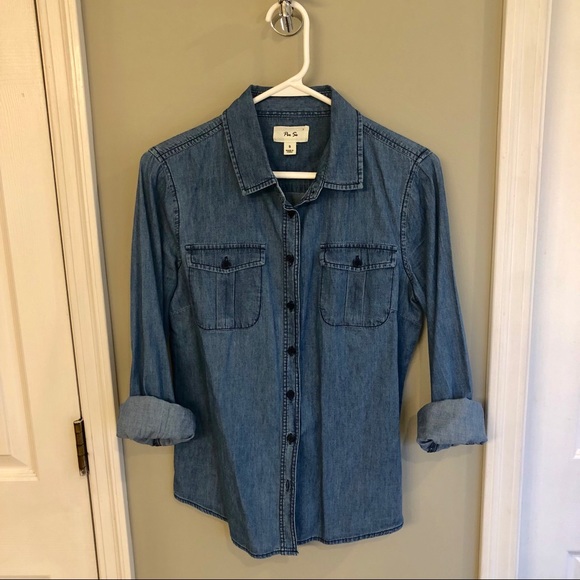 This is a super cute denim shirt, even better in person! Thank you for shipping so quickly!!😊🌺👍