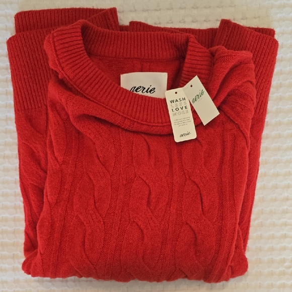 Brand new as described and fast shipping! Love this sweater!
