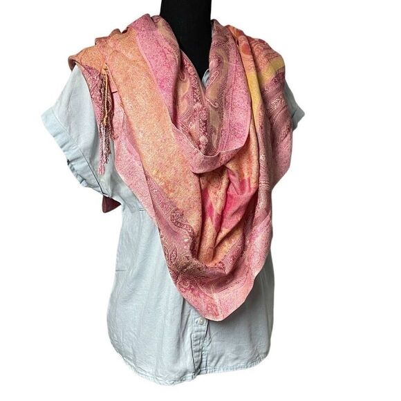 pink and orange paisley scarf. Great price and looked like the picture. Pleased the item was what I was expecting, no surprises.