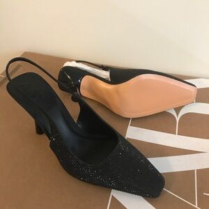 Zara Black Diamond Slingback Heels. Size 8 womens.