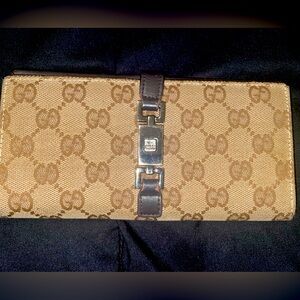 Authentic Gucci GG Monogram Logo Jackie Long Wallet