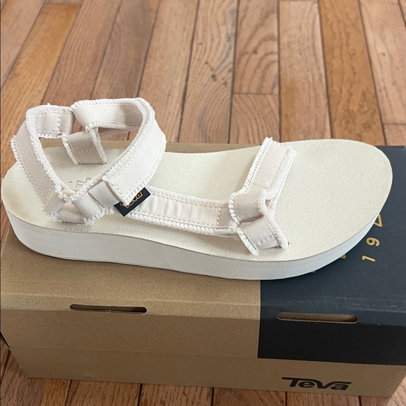 The Teva sandals are exactly as shown in the photos and brand new, just as described. I absolutely love them! Very happy with my purchase. Thank you!