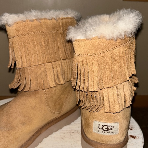 Just what I wanted! They fit true to size equivalent to a woman’s size 6 from a child’s size 4 as stated. New condition and neutral tan color. They can be worn with a skirt/dress/shorts or leggings/sweatpants/pants. I’m a little older. So, I remember when UGG’s first became popular in America and young women were wearing them with bikinis! Lol! I wore them yesterday, but I was fully dressed! Lol! Arrived very quickly and safely. Thanks so much!