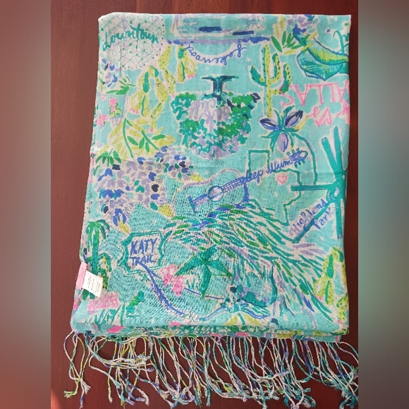 Absolutely love this Lilly Pulitzer “The Sunshine State” Murfee scarf 🌴💚 Even prettier in person & sooo soft. Exactly as described & truly EUC. Fast shipping nicely packaged. Loved that it came from a smoke free, bunny friendly home 🐰 Made me smile as a former rabbit owner. Wonderful seller, would definitely purchase again
