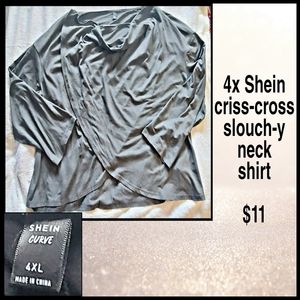 4x Shein Long-Sleeve Grey Criss-cross Tee