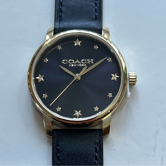 I just received my Coach watch today. It's absolutely gorgeous! Stunning! It's even more beautiful in person! The pictures do not do it justice! I love the navy blue dial with the gold tone accents. And the navy blue leather strap is absolutely amazing!