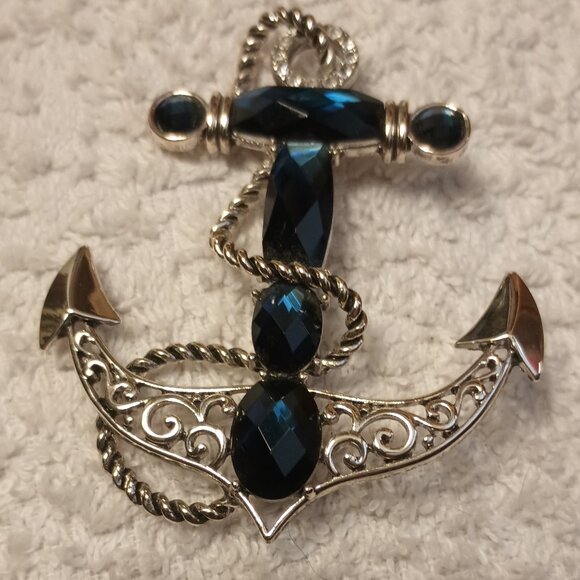 Exceptional silver tone and sapphire crystals anchor. Dress it up or down, either way, it will help make the outfit.
