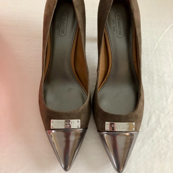 Cute pumps that arrived quickly. More of a grayish brown putty color than plain gray.