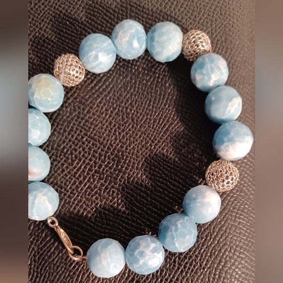 Thank-you❗ This is a really pretty bracelet. Each stone bead is multifaceted which catches the light. The silver beads are very unique - like a mesh ball. Unlike anything I've seen before - very cool😊❗