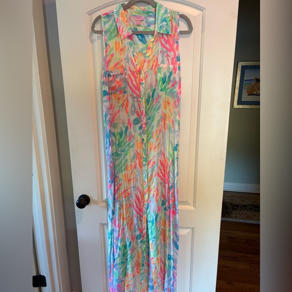 The Lilly Pulitzer Ezra Maxi Dress in Sparkling Sands is like new. The seller was great and wrapped and packaged it so nicely and shipped it fast. I would buy from this seller again.