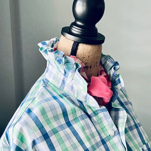 The shirt is super cute: a perfect combination of feminine and masculine! Also, great communication with the seller!