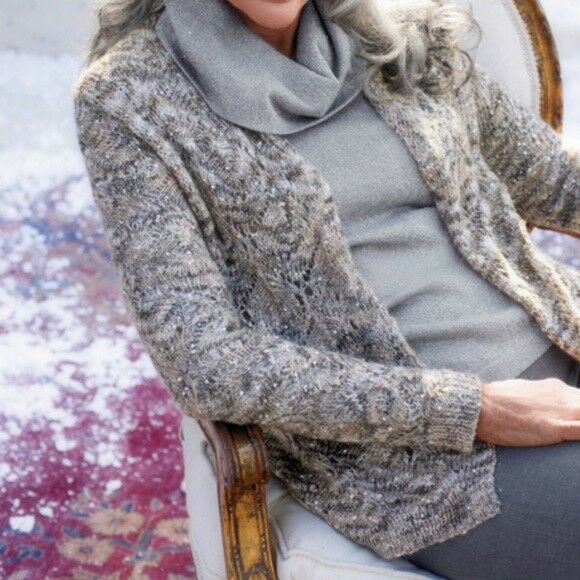 The picture does *not* due justice to this absolutely stunning -- and sparkling -- open front cardigan!!