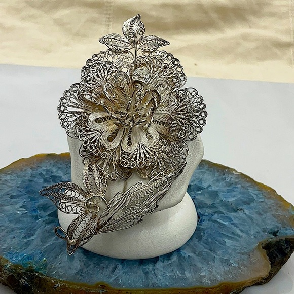 Vintage 1960s sterling silver wire flower brooch. Exquisite!