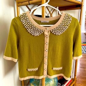 Green short sleeve cardigan with pearl details