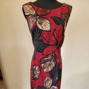 CONNECTED Floral Sleeveless Dress - Burgundy, Black, Cream