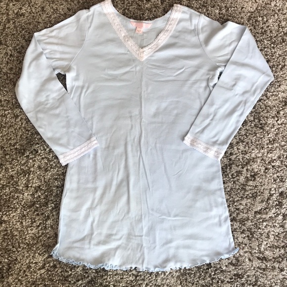 I was excited to receive this comfy and pretty little night shirt today! It was packed securely in a small box, thoughtfully wrapped in a darker blue tissue paper that looked lovely with it, and sent the day after I purchased it. In the condition described, for such a good price. Thank you! I will enjoy this. :)