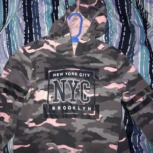 little girls hoodie , colours pink, grey, black and green.