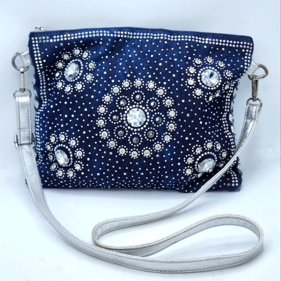 I love this unusual purse! Can't decide which side I like best--the sparkles or the woven silver leather. Really fun! I can't tell who the maker of the bag is--no marks on it--wish I knew so I could check out more of this line.