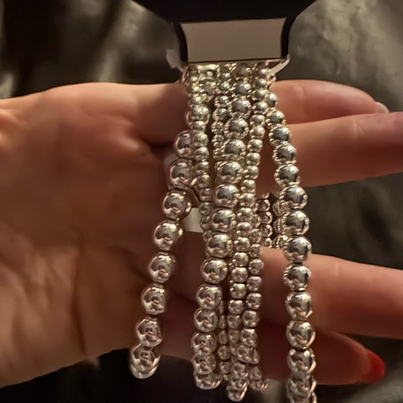 Beautiful sparkly and shiny silver beaded bracelet! At work right now but can't wait to wear it!😁✨✨✨✨✨💯