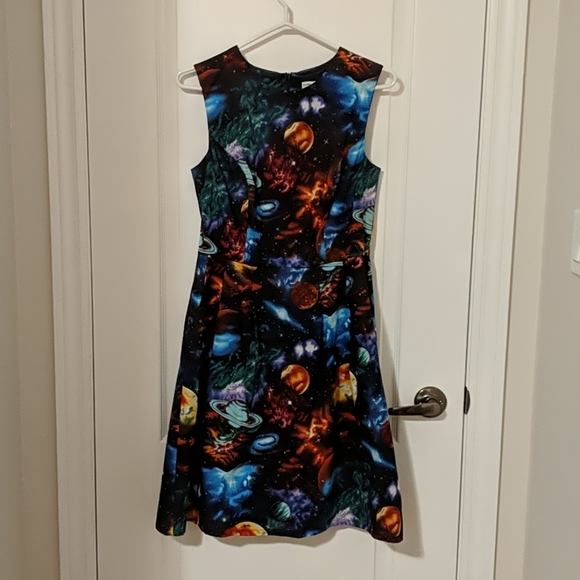 This dress is what dreams are made of! Beautiful bold cotton fabric, this dress fits me like a glove, and perfect length. Definitely seems brand new. I will get a lot of wear out of this. Thank you so much!