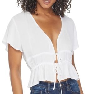 White Guess Tie Up Top