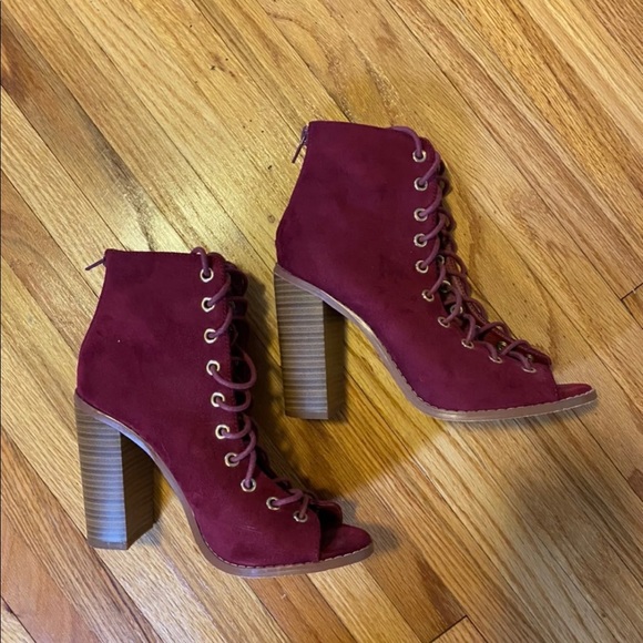 Love these beautiful burgundy color booties. Brand new condition. Fast delivery. Received a nice thank you card and wishing me a Happy Birthday! Thank you for the thoughtful card, also got a nice little gift birthday popcorn. Yeeeeaaa. Thanks again!
