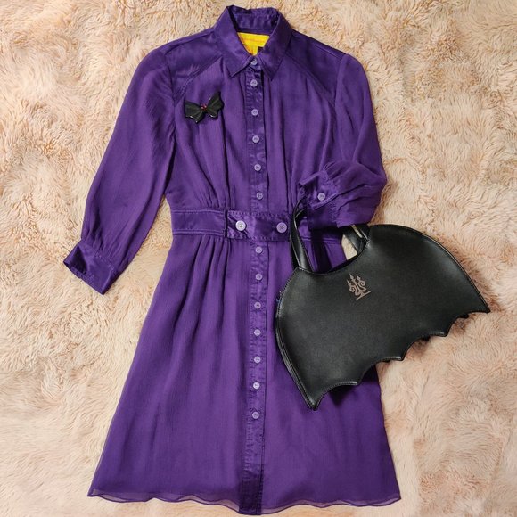 Beautifully constructed dress! The color is also rare to find and the fully functional buttons allow for adjustment on the fit of the neckline and skirt. The waistline is cinched (and even unbuttons as well), which can be a hard feature to sometimes for long sleeve silk dresses. Last of all, it's even lined with silk and not poly! Amazing .